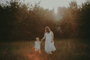 Sesja ciążowa ze starszą córeczką i końmi